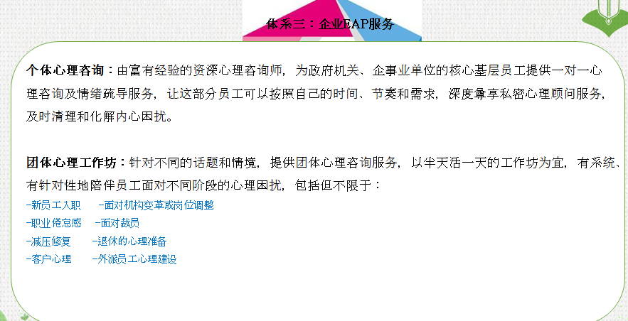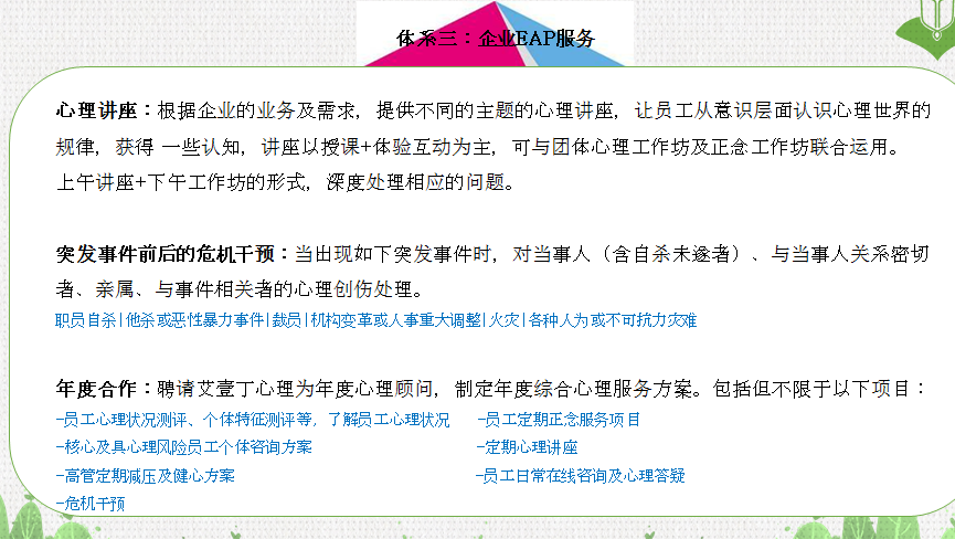 艾壹丁心理,以向社會大眾普及心理健康知識為使命,創(chuàng)立三大服務(wù)體系,